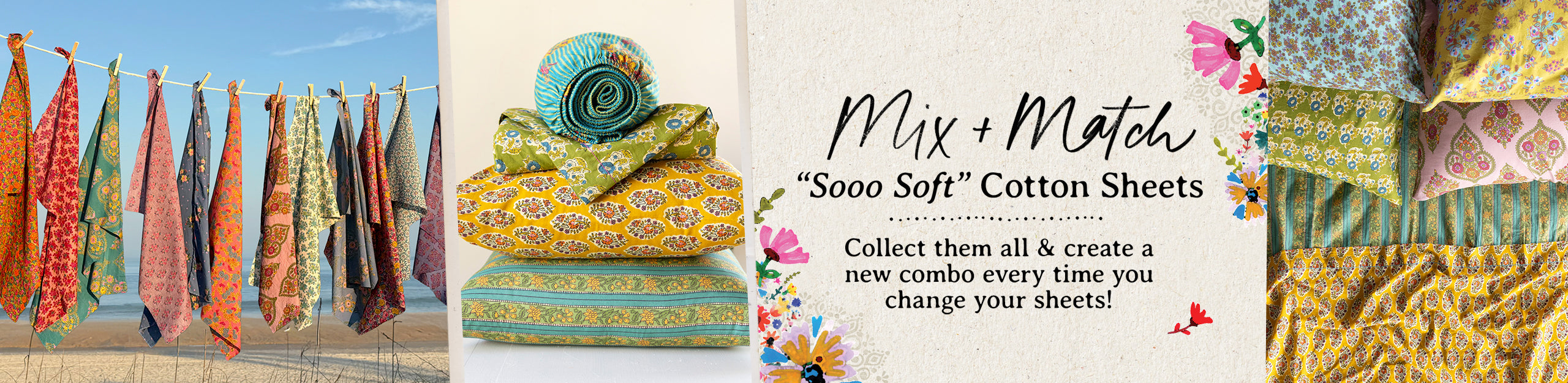 A: Absolutely. Our bedding is designed to coordinate across patterns and colors, so you can pair sheets, quilts, and pillow shams for a unique boho bedroom look.
